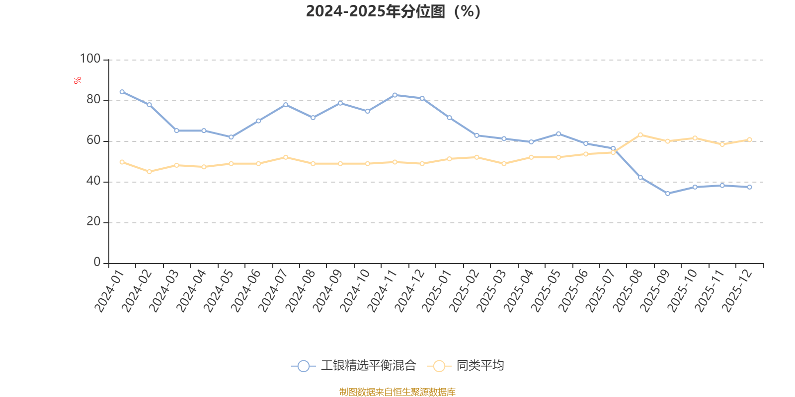 通过所选区间该基金净值增长率分位图,可以观察该基金与同类基金业绩比较情况。图为坐标原点到区间内某时点的净值增长率在同类基金中的分位数。